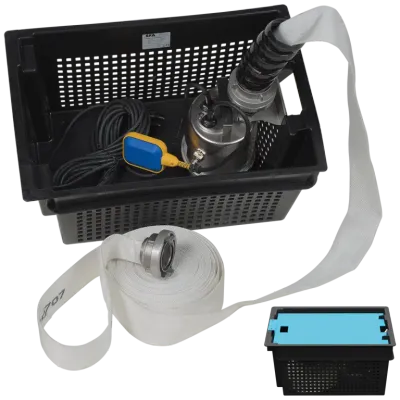 Mit dem Sanisub Steel Kit von SFA Sanibroy sind Sie für Überflutungen gerüstet. Lieferung inkl. stabilem Korb, 15m Druckschlauch (Schnellkupplungen) und Schwimmerschalter.